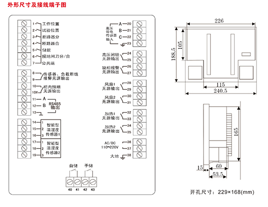 具备实时动态显示一次密集图及其相应的分合位动作状态、收车位置指示、储能指示、接地开关指示、带点显示及闭锁、温湿度显示控制、语音防误提示、多种电力参数测量(如电流、电压、有功/无功功率、功率因数、有功/无功电能等)、出头或电缆搭接头温度显示、RS-485通讯借口等功能,并可以安装多种操作按钮和转换开关,我公司提供个性化的产品制定策略,选型时,用户总可悬着到一款适合自己的需求的铲平和功能组合。