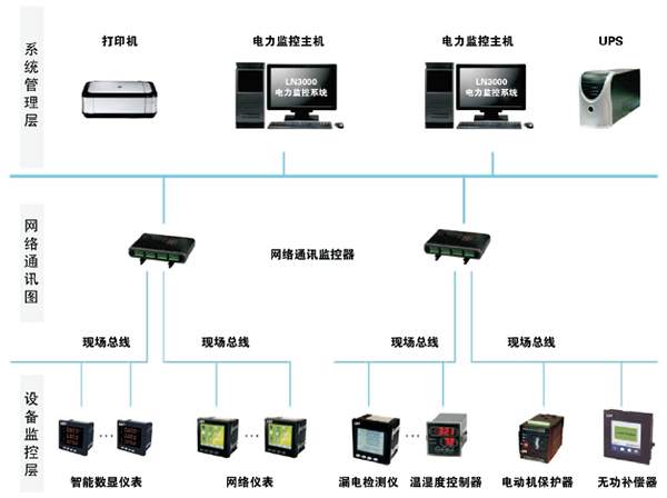 LN3000低压配电系统是莱恩电气在结合多年应用经验的基础上为提高工厂配电自动化,采用的电子,自动化、电力综合保护、通讯、计算机等软硬件技术研制出的配电监控系统。该系统集的配电监控,运行分析、管理于一体,应用的监控技术、通讯、软件技术、使得配电系统的监视、控制、故障预防、维护等管理成本大大降低。系统的安全性得到很大的提高,可以满足用户对配电系统不同层次的需求。